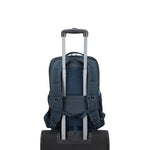 • Trolley strap easily attaches the backpack to any rolling luggage