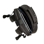 A main padded Laptop compartment has a strap to securely fix your device in place. Inner compartments hold documents, accessories and a Tablet up to 10.1 inches. Two front zippered pockets have an organizer panel for a Smartphone, business cards and other items. Two side pockets hold bottles of water.