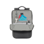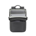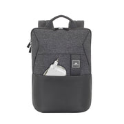 The bag embodies stylish sophistication with light grey, charcoal and black fabrics which effortlessly merge. Top quality faux leather and stylish melange polyester provide padding from accidental hits and drops. Highly versatile and capacious it is ideal for business trips and travelling and will allow you to travel organised and prepared with everything in place.