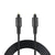 Optical cable for connecting digital audio devices. The optical cable reduces signal loss and therefore provides better audio quality than a traditional copper cable. This cable has Toslink connectors at each end, the most common type of optical connector for audio.