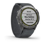 Get up to 80 hours of battery life in GPS mode 1 , up to 300 hours in max battery mode 1 and up to 65 days in smartwatch mode with solar charging 2 .