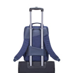 • Trolley strap easily attaches the backpack to any rolling luggage.