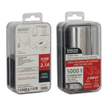 Dual input. Micro USB and Apple Lightning socket input for charging RIVAPOWER with the original Apple cable.