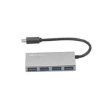 The Sandberg USB-C to 4 x USB 3.0 Pocket Hub allows connection of up to 4 USB devices to your device with USB-C port. Thus you can for example connect an external hard disk, a printer and a mouse simultaneously.